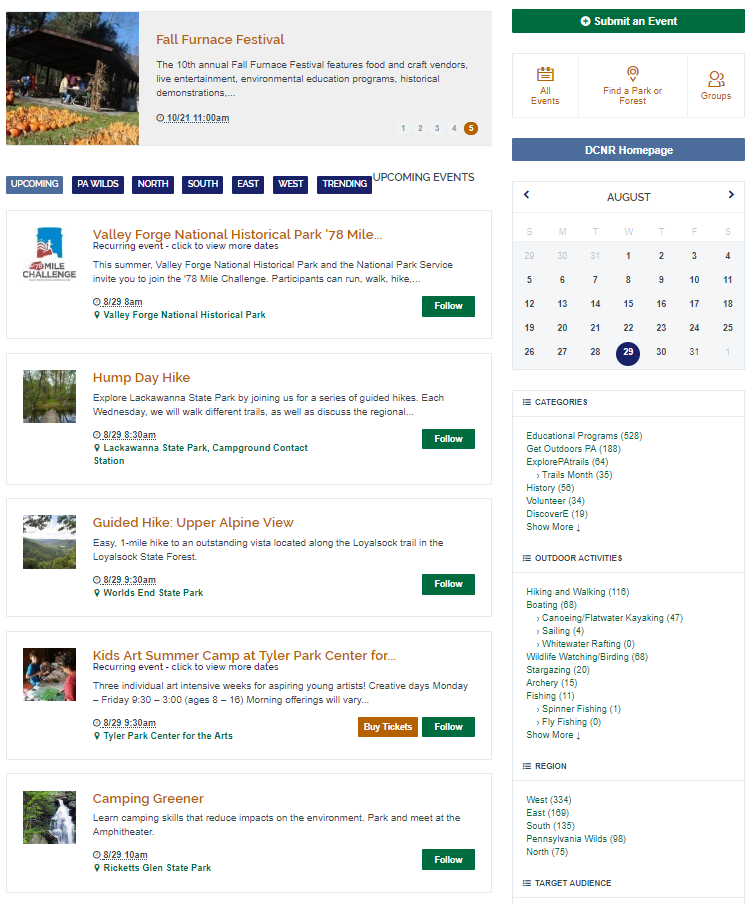 If you’re not yet a DCNR Calendar of Events user, sign up.